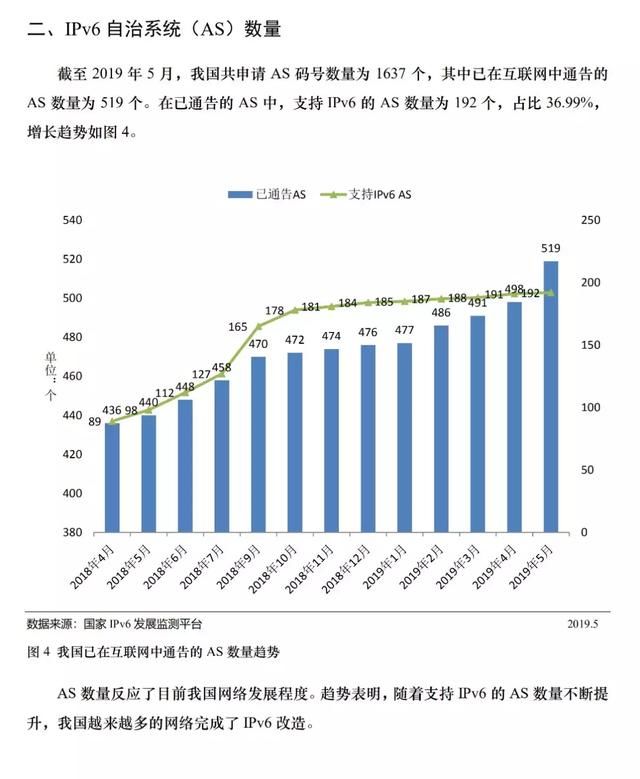 截至2019年5月,三大基础电信企业城域网出口总流量达398.43gbps,lte核心网总流量达508.87gbps,骨干直联点总流量达75.74gbps,国际出入口的ipv6总流量达到80.45gbps。