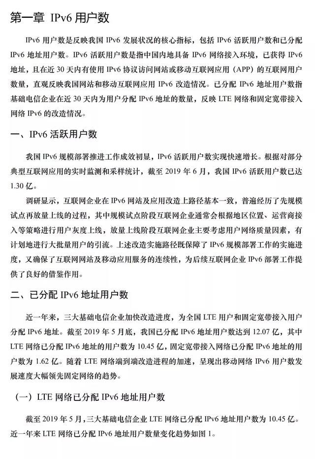 截至2019年6月,我国ipv6活跃用户数已达1.30亿,基础电信企业已分配ipv6地址的用户数达12.07亿。