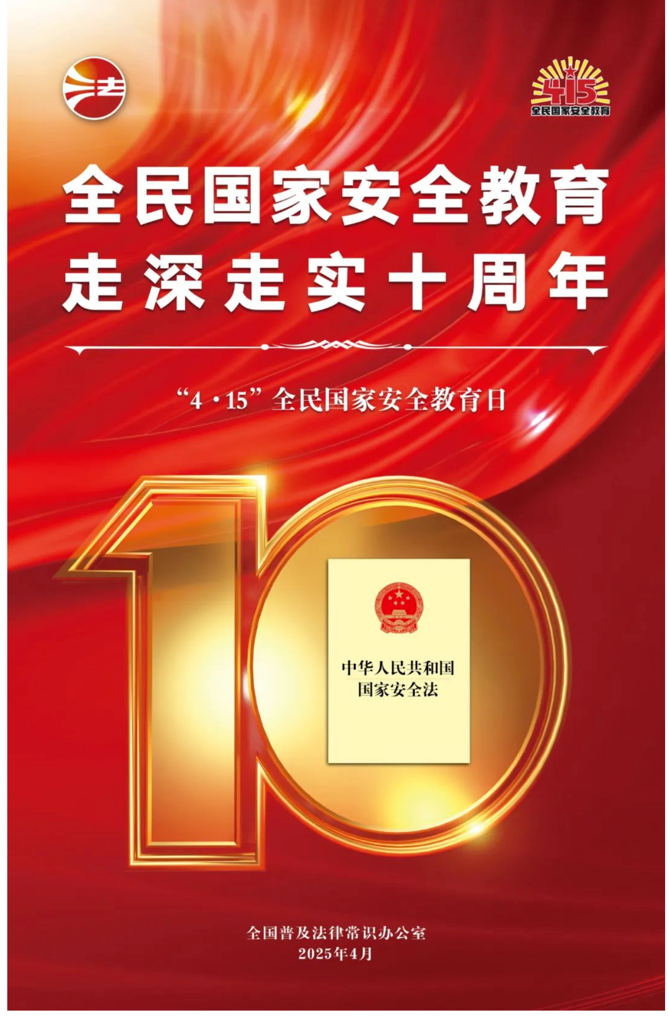 2025年是《中华人民共和国国家安全法》颁布施行十周年。2015年7月1日,《国家安全法》正式施行,对政治安全、国土安全、军事安全、文化安全、科技安全等11个领域的国家安全任务进行了明确,并规定每年4月15日为全民国家安全教育日。今年4月15日是第十个全民国家安全教育日,主题为“全民国家安全教育 走深走实十周年”。